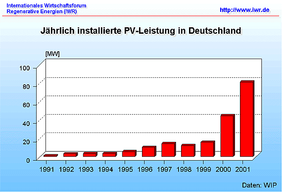 der insgesamt installierten Photovoltaikleistung in Deutschland (1991-2001)