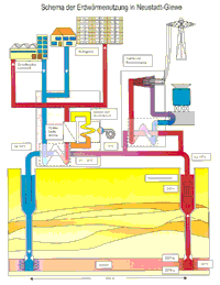 Schema der Erdwärmenutzung am Beispiel