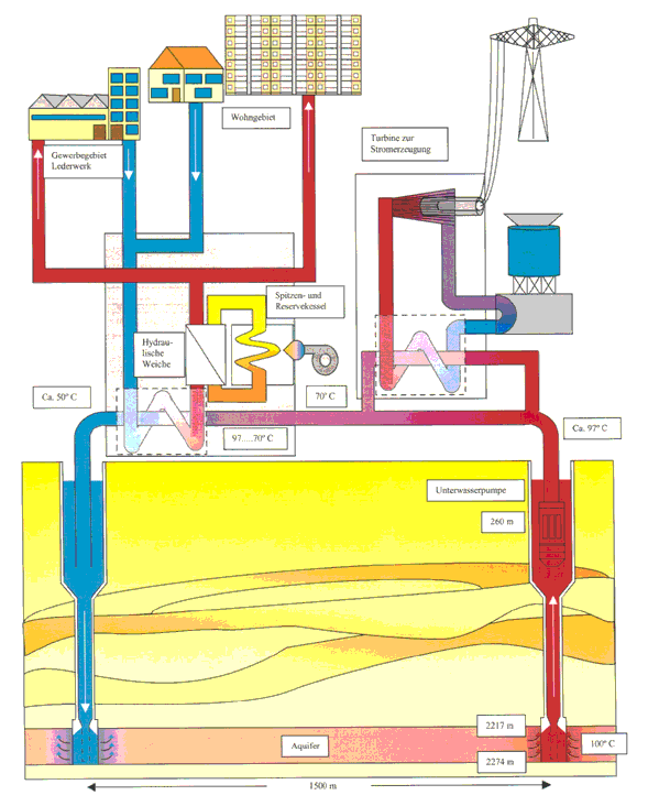 Schema des Geothermie-Heizwerks in Neustadt-Glewe