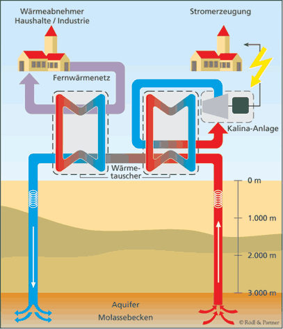 Schema des geplanten Geothermie-Heizkraftwerks in Unterhaching