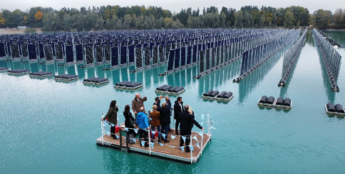 Floating-PV weitergedacht: Erste senkrecht installierte Photovoltaikanlage auf Baggersee in Betrieb