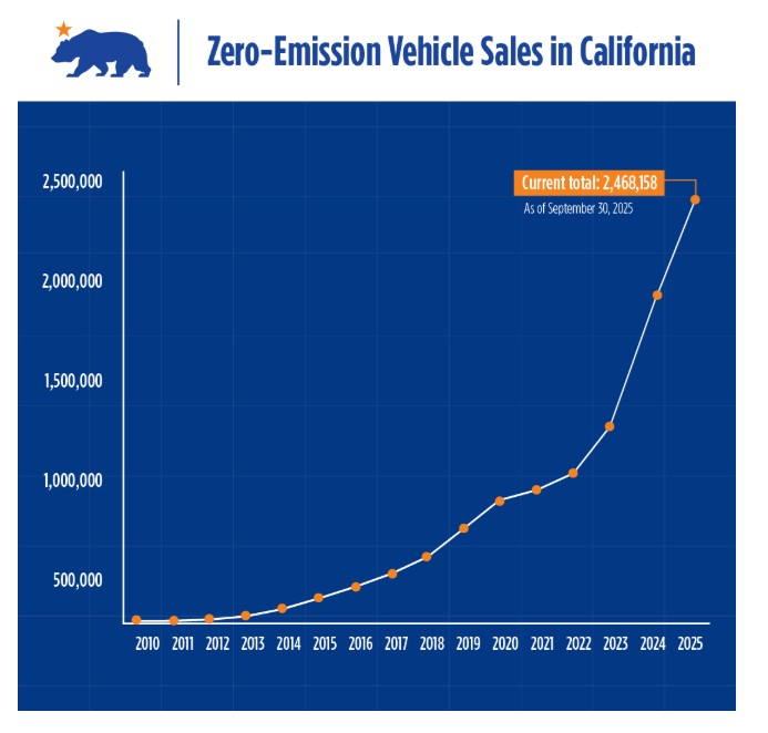 Sacramento – Die Nachfrage nach emissionsfreien Fahrzeugen (ZEVs) in Kalifornien steigt rasant, obwohl die Trump-Regierung versucht, das Streben des Golden State nach einer Zukunft mit 100 Prozent sauberer Energie zu behindern. Im dritten Quartal 2025 waren 29,1 Prozent aller Neuwagenkäufe ZEVs – ein Rekord.